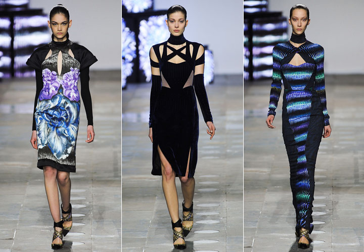 This is why I prefer to write about collections without reading reviews; they cloud the mind. I couldn’t believe it when I heard the designers were inspired by Asian culture because I saw so much science. The sole exception being the floral dress above on the left; it reminded me of Prabal Gurung’s Spring 2012 Nobuyoshi Araki references, which reminded me of the violet print that defined Givenchy Fall 2011… funny how fashion works that way.