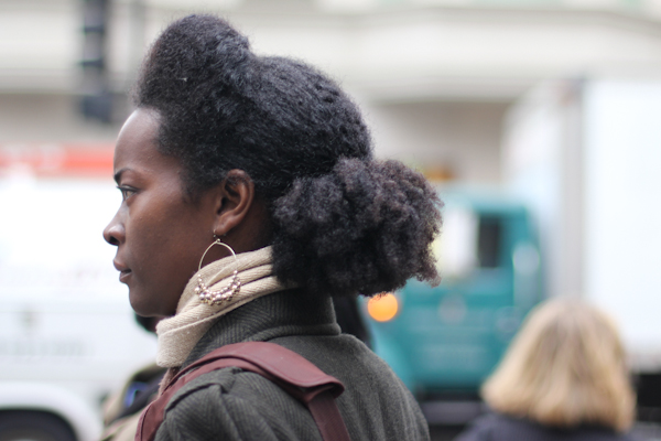 Sometimes when I’m out walking around street-style hunting I’ll see a photo opportunity that is perfect as a candid. This woman was so strikingly beautiful that I couldn’t resist photographing her as she waited to cross the street. Yet, like a bird watcher, I didn’t want to disturb her and ruin the image. If you know this woman please send her a link to this photo. I’m sure she’d love to see it.