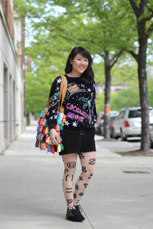 I don’t even need to explain to you why I liked Yoona’s look. You all should know by now, but I’ll explain anyway (you know you want it). The sequined top really makes a statement and has that fantastic kitschy vibe not for the faint of heart. Unsurprisingly Yoona told me her favorite store in Chicago is Kokorokoko, purveyor of all things awesome from the 80s and 90s, which is where she bought that great top. Damnit Sasha I told you I have a standing order for all things insane and sequined! Just kidding, I am already at hoarder status with my closet. Plus it wouldn’t be fair to hog all the cool things for myself, now would it…